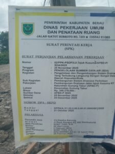 Proyek yang bersumber dari APBD Perubahan Kabupaten Berau Tahun Anggaran 2025 dengan nilai anggaran mencapai Rp348.279.000 tersebut dilaksanakan oleh CV Najaha Karunia.