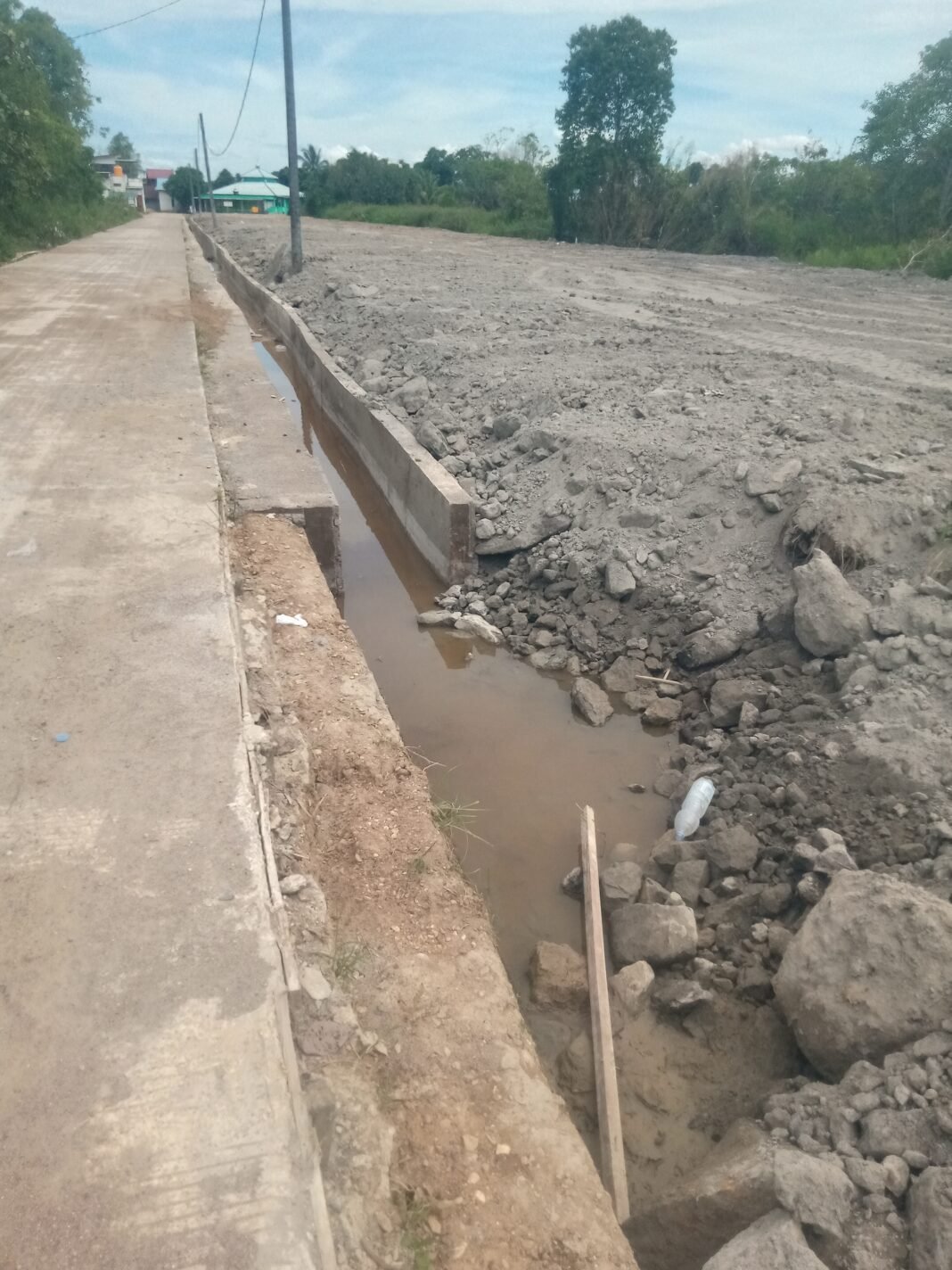 Ironisnya, fungsi utama drainase sebagai pengendali aliran air justru tidak berjalan optimal. Di beberapa titik, air terlihat menggenang dan tidak mengalir langsung ke saluran utama, yang mengindikasikan lemahnya perencanaan teknis serta minimnya ketelitian dalam pelaksanaan pekerjaan.