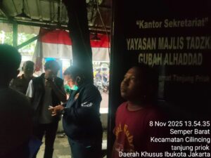 MEDIAISTANA.COM.JAKARTA 14 NOV 24,– Pamapta Polres Pelabuhan Tanjung Priok yang dipimpin Ipda Adi Tanjung, S.H., M.H., bersama Piket Fungsi, bergerak cepat menindaklanjuti aduan masyarakat melalui layanan Call Center 110 terkait dugaan kebakaran akibat korsleting listrik di Kantor Sekretariat Yayasan Majlis Tadzikir Gubah Alhaddad, kawasan Makam Mbah Priok, Koja, (8/11).
