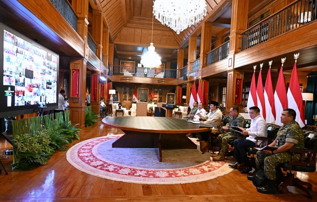 Jakarta -MEDIA ISTANA (Puspen TNI). Panglima TNI Jenderal TNI Agus Subiyanto bersama Menteri Pertahanan RI Sjafrie Sjamsoeddin dan Wapang TNI Jenderal TNI Tandyo Budi R mendampingi Presiden RI Prabowo Subianto meresmikan 218 jembatan yang tersebar di berbagai wilayah Indonesia melalui video conference dari kediaman Presiden RI di Hambalang, Bogor. Senin (9/3/2026).