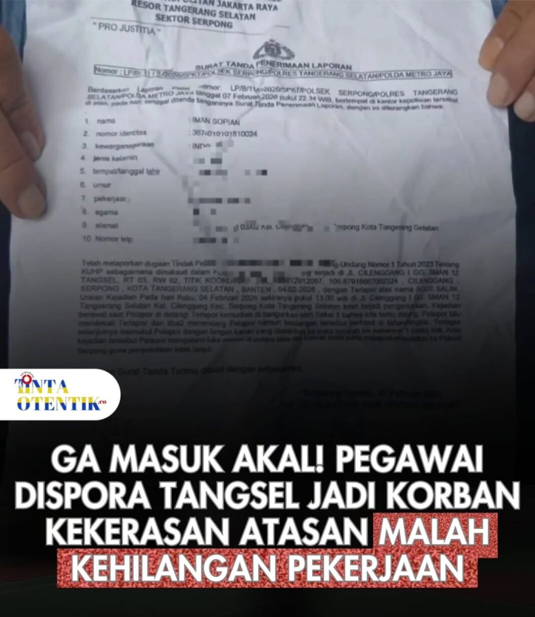 Tangerang Selatan, 1 April 2026 – Iman Sopian (45), pegawai PPPK di Dinas Pemuda dan Olahraga (Dispora) Kota Tangerang Selatan, dilaporkan menjadi korban dugaan penganiayaan oleh oknum pejabat berinisial AS. Insiden ini diduga bermula dari persoalan utang piutang senilai Rp5 juta, yang berujung pada kekerasan fisik.