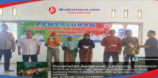 Pesisir Barat – Pemerintahan Pekon Way Haru Kecamatan Bangkunat Kabupaten Pesisir Barat Lampung, Salurkan BLT-DD Tahap 1 ke – 12 KPM (Keluarga Penerima Manfaat) penyaluran BLT- DD bertempat dibalai Pekon setempat, Kamis (24/04/2025).