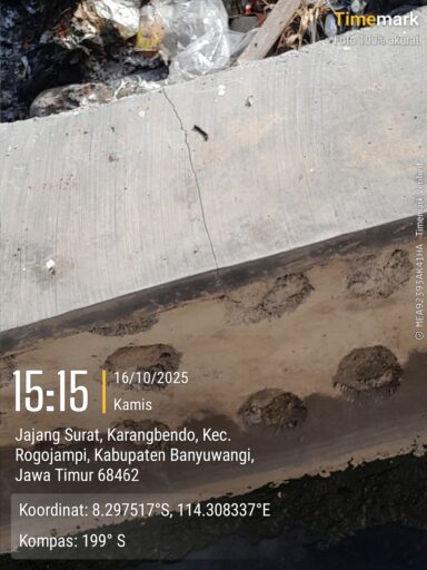 Banyuwangi, 24 Oktober 2025 — Kegiatan pembangunan Dam Jajang Kuning yang berlokasi di Desa Karangbendo, Kecamatan Rogojampi, Kabupaten Banyuwangi, menuai sorotan dari para petani penerima manfaat.