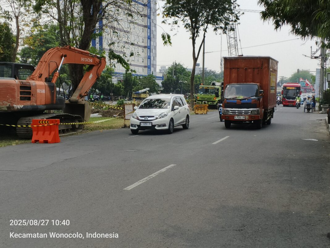 Arus lalu lintas di sekitar lokasi proyek memang sedikit melambat, terutama pada jam sibuk. Namun kendaraan pribadi, angkutan umum, hingga kendaraan barang tetap dapat melintas dengan pengaturan khusus. Sejumlah petugas juga sesekali membantu mengarahkan kendaraan agar tidak terjadi penumpukan di sekitar titik proyek.