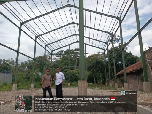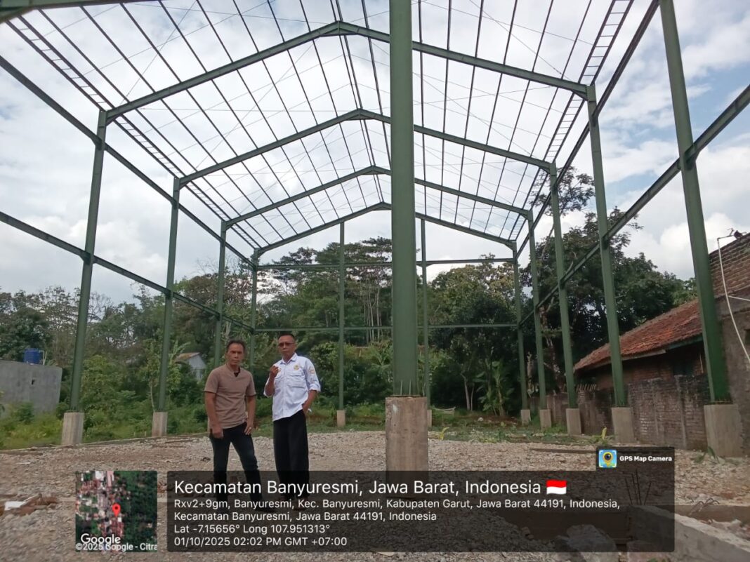Lokasi pembangunan gedung serbaguna bertempat di belakang Kantor Desa Banyuresmi, Kecamatan Banyuresmi, Kabupaten Garut. Jum’at (03/10/2025).