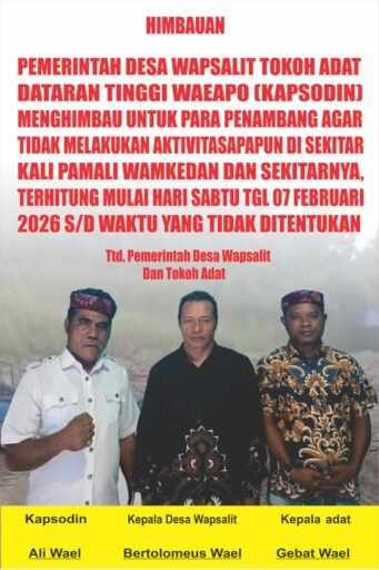 Kepala Desa Wapsalit, Bartolomeus Wael, bersama Kaksodin Ali Wael dan Kepala Adat Gebat Wael, secara resmi mengeluarkan imbauan keras kepada seluruh penambang agar menghentikan seluruh aktivitas penambangan emas ilegal, khususnya di kawasan Kali Pamali Wamkedan dan sekitarnya.