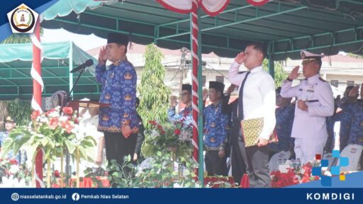Nias Selatan•||mediaistana.com~Pemerintah Kabupaten Nias Selatan menggelar Upacara Peringatan Hari Sumpah Pemuda ke – 97 Tahun 2025 dengan tema ” Pemuda Pemudi Bergerak , Indonesia Bersatu “, Bertindak sebagai Inspektur Upacara Wakil Bupati Nias Selatan Ir. Yusuf Nache, ST., MM, dan Komandan Upacara Anggota KONI Kab. Nias Selatan Kadi Kamsa , bertempat di Lapangan Orurusa Teluk dalam ,