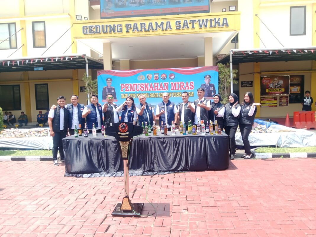 saat pemusnahan barang bukti di hadiri oleh tokoh-tokoh masyarakat dan tokoh-tokoh agama barng bukti miras yang di musnahkan sebanyak 38.875 ribu botol minuman keras (miras) hasil dari berbagai operasi penertiban selama tiga bulan terakhir. Kegiatan ini dilaksanakan bersama unsur Forkopimda sebagai wujud komitmen dalam menekan peredaran miras ilegal yang kerap memicu gangguan keamanan dan ketertiban masyarakat di wilayah Kota Bogor.