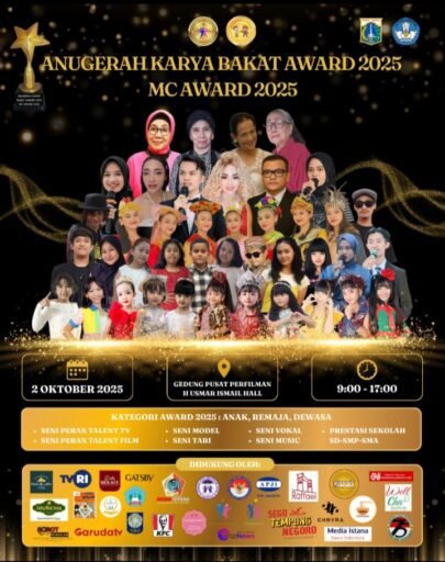 Jakarta, Mediaistana -Yayasan Karya Bakat Indonesia Kamis (2/10/2025) Mengadakan Penganugerahan Karya Bakat Award serta MC Award 2025 Bertempat diGedung Perfilman Kuningan Jakarta Selatan, Penganugerahan ini diberikan kepada siswa-siswi pelajar dan anak bangsa yang berbakat dan diberikan juga bagi anak bangsa disabilitas di tiga puluh delapan provinsi yang ada di Indonesia,pemberian anugerah yang diselenggarakan setiap setahun sekali ini turut didukung oleh Komnas Anak Indonesia Agustinus Sirait selaku ketua, Komnas Anak Disabilitas Jonna Aman Damanik selaku Komisioner,serta Ketua APJI DPD Jakarta.