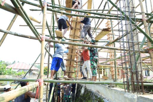 Jakarta -media istana -penuh Semangat, Satgas TMMD Kodim 1505/Tidore dan Warga Gotong Royong Angkat Papan Mal Masjid