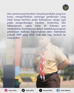 Hari pertama perkemahan menjadi pembuka yang luar biasa, memperlihatkan semangat pembinaan yang tidak hanya berfokus pada kedisiplinan, tetapi juga pada pengembangan karakter, kreativitas, dan kebersamaan. Lapas Kelas IIA Sidoarjo pun membuktikan komitmennya dalam mendukung program pembinaan berbasis kepramukaan demi membentuk pribadi WBP yang lebih baik dan siap kembali ke masyarakat.