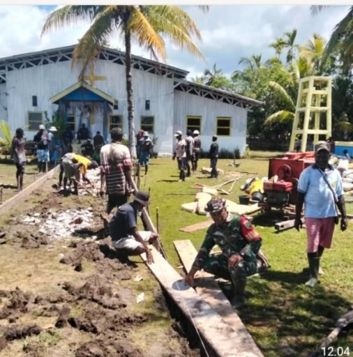 Jakarta -MEDIA ISTANA Timika – Wujud kerja nyata Babinsa Koramil 1710-01/Kokonao Serka Hendrik F Renyaan bersama warga masyarakat binaan tampak saat kegiatan gotong royong bersama masyarakat melaksanakan pengecoran jalan menuju sarana ibadah Gereja Katolik Kokonao di Kp. Kokonao, Distrik Mimika Barat, Kah. Mimika, Kamis (05/02/2026).