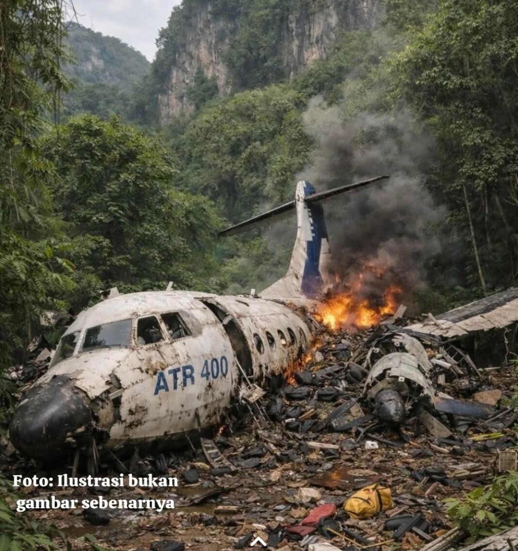 Pangkep, Sulawesi Selatan — Pesawat ATR 42-500 milik Indonesia Air Transport yang sebelumnya dilaporkan hilang kontak akhirnya ditemukan di kawasan Gunung Bulusaraung, Kabupaten Pangkep, Sulawesi Selatan.