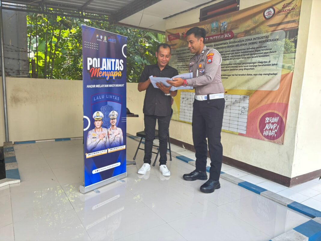 Media Istana.com. Banyuwangi – Satuan Lalu Lintas (Satlantas), Samsat Banyuwangi menghadirkan program unggulan Polantas Menyapa sebagai upaya untuk meningkatkan kualitas pelayanan publik di bidang registrasi kendaraan bermotor, Senin (03/11/2025).