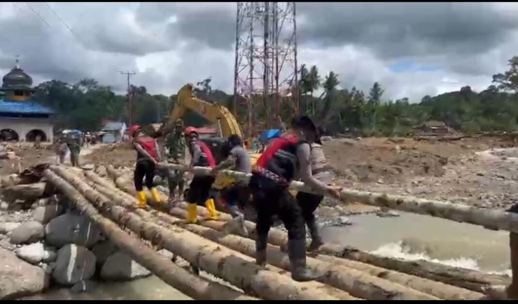 Kabupaten Agam – Jembatan darurat yang menghubungkan antardesa di Nagari Salareh Aia, Kabupaten Agam, Sumatera Barat (Sumbar), hanyut terbawa arus saat terjadi banjir. Polda Sumbar dan Riau kini membangun kembali jembatan darurat tersebut.