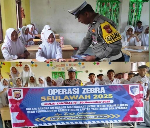 “Operasi Zebra Seulawah Tahun 2025 sebagai salah satu upaya Kepolisian menekan angka kecelakaan di jalan raya. Karena berkendara tanpa mematuhi aturan dapat mengancam keselamatan jiwa.” Terang Kasat Lantas Polres Aceh Timur AKP Hardi, S.H.(MN)