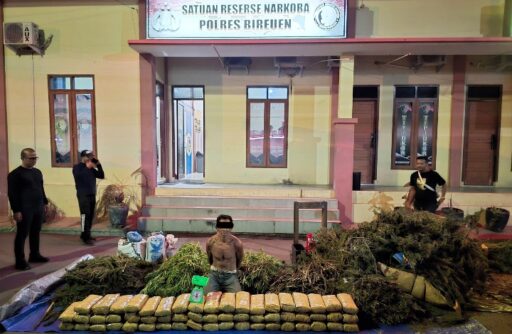 Bireuen — Polres Bireuen kembali berhasil mengungkap kasus narkotika jenis ganja. Kali ini, satu pelaku berinisial BH (52) bersama barang bukti berupa 154,0016 kg ganja, satu unit mesin press, dan satu timbangan digital ikut diamankan.