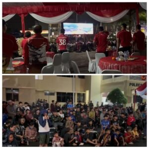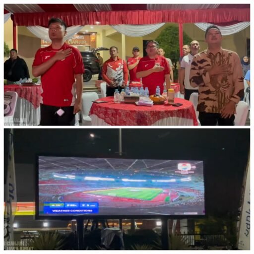 Cianjur, 30 Maret 2026 – Polres Cianjur menggelar kegiatan nonton bareng (nobar) pertandingan FIFA Series 2026 antara Timnas Indonesia melawan Bulgaria di Lapangan Apel Polres Cianjur, Senin (30/3/2026). Acara ini dipimpin langsung oleh Kapolres Cianjur, AKBP Dr. A. Alexander Yurikho Hadi, S.H., S.I.K., M.M., M.Si., M.H.I., M.I.P., dan dihadiri Wakapolres, para Pejabat Utama (PJU), personel Polres Cianjur, serta masyarakat dan komunitas pecinta sepak bola di Kabupaten Cianjur.