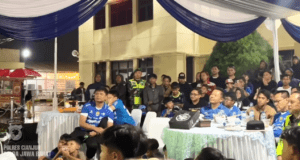 Cianjur, 6 April 2026 – Polres Cianjur menggelar kegiatan nonton bareng (nobar) pertandingan Indonesia Super League antara Persib Bandung melawan Semen Padang di lapangan utama Mako Polres Cianjur, Minggu (5/4).