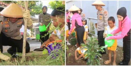 Penanaman pohon di TK Bhayangkari Kraksaan diharapkan menjadi sarana edukasi bagi anak-anak sejak dini tentang pentingnya mencintai lingkungan.