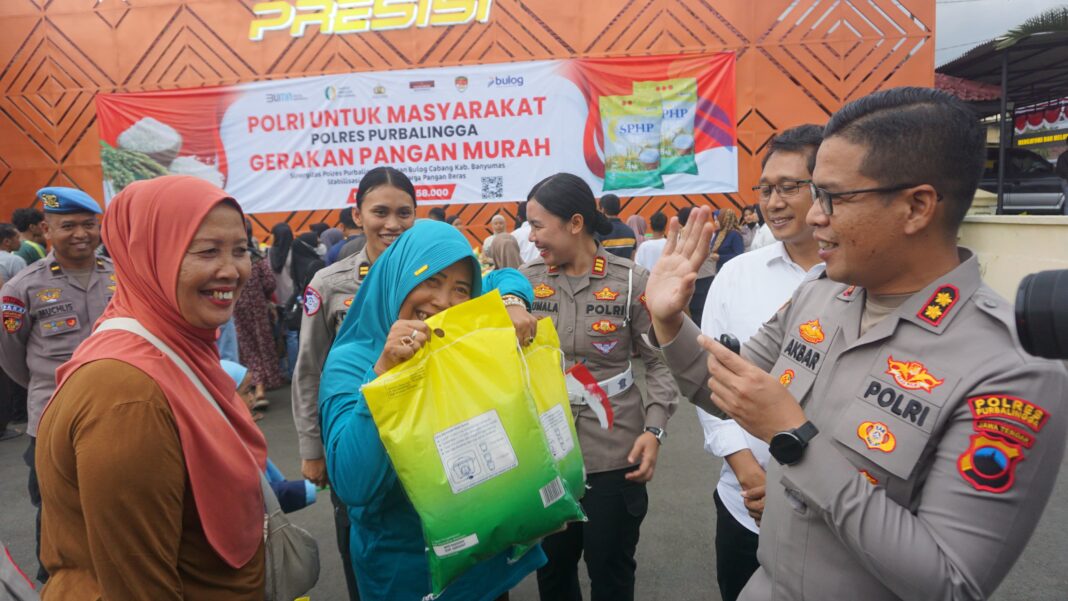 Mediaistana.com – Jawa Tengah Polres Purbalingga – Polda Jateng | Polres Purbalingga kembali menggelar program Gerakan Pangan Murah (GPM) menyalurkan beras Stabilisasi Pasokan dan Harga Pangan (SPHP) dari Perum Bulog. Kegiatan diselenggarakan di halaman Mapolres Purbalingga, Senin (11/8/2025) sore.