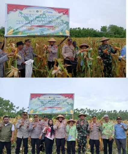 Polsek Air Buaya menggelar panen raya jagung Kuartal I yang berlangsung di Desa Awilinan, Kecamatan Air Buaya, Kabupaten Buru, Kamis (8/1/2026). Kegiatan ini menjadi wujud nyata sinergi antara Polri, pemerintah daerah, dan masyarakat dalam mendukung program ketahanan pangan nasional.