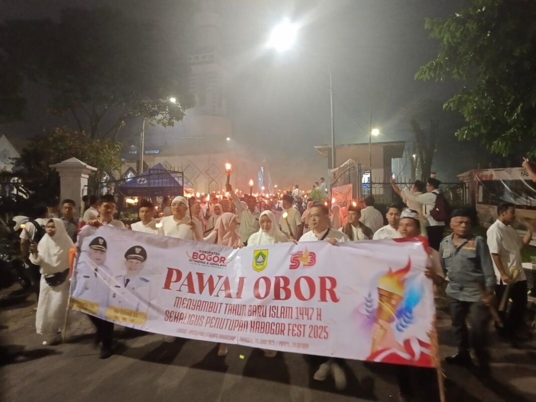 Jajaran Polsek Cibinong Polres Bogor melaksanakan kegiatan pengamanan dalam rangka penutupan Kabogor Fest sekaligus pelaksanaan pawai obor menyambut 1 Muharam 1447 Hijriah, Kamis malam (26/06/2025). Kegiatan yang diinisiasi oleh Dinas Kebudayaan dan Pariwisata Kabupaten Bogor ini diikuti oleh kurang lebih 5.000 peserta dan berjalan dengan aman serta tertib.