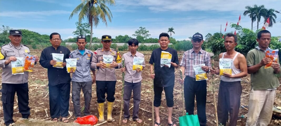 Kapolsek Rumpin AKP Suyoko, S.H., bersama Bhabinkamtibmas Desa Mekarsari Aiptu Ateng Nasuta hadir langsung dalam kegiatan tersebut. Penanaman dilakukan bersama gabungan kelompok tani (Gapoktan) serta Pemerintah Desa Mekarsari sebagai bentuk sinergi antara Polri, pemerintah, dan masyarakat.