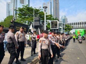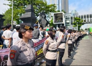 Jakarta,Mediaistana.Com – Polda Metro Jaya menurunkan polisi wanita (Polwan) dalam pelayanan aksi penyampaian pendapat yang digelar Dewan Pengurus Nasional Tani Merdeka Indonesia di depan Polda Metro Jaya, Jakarta Selatan, Jumat (17/4/2026). Kehadiran Polwan menjadi bagian dari upaya pelayanan humanis agar penyampaian aspirasi masyarakat berlangsung aman, tertib, dan kondusif.