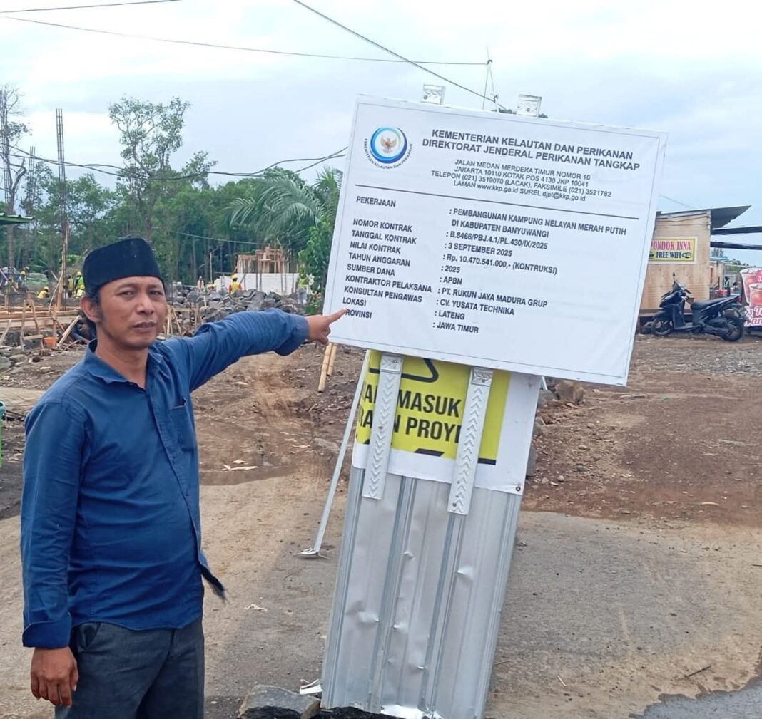 BANYUWANGI – Proyek Kampung Nelayan Merah Putih senilai Rp 10,43 miliar di Kelurahan Lateng, Kecamatan/Kabupaten Banyuwangi, kembali disorot publik. Pasalnya, proyek dari Kementerian Kelautan dan Perikanan (KKP) yang dikerjakan PT Rukun Jaya Madura Group tersebut diduga menggunakan material tambang galian C tanpa izin alias ilegal.