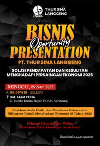 PT. Thur Sina Langgeng akan menyelenggarakan acara besar bertajuk “Bisnis Opportunity Presentation” yang menawarkan Solusi Pendapatan dan Kesulitan Menghadapi Persaingan Ekonomi 2026. Acara ini ditujukan bagi masyarakat yang ingin mempersiapkan diri dan mencari peluang baru dalam menghadapi tantangan ekonomi di tahun mendatang.