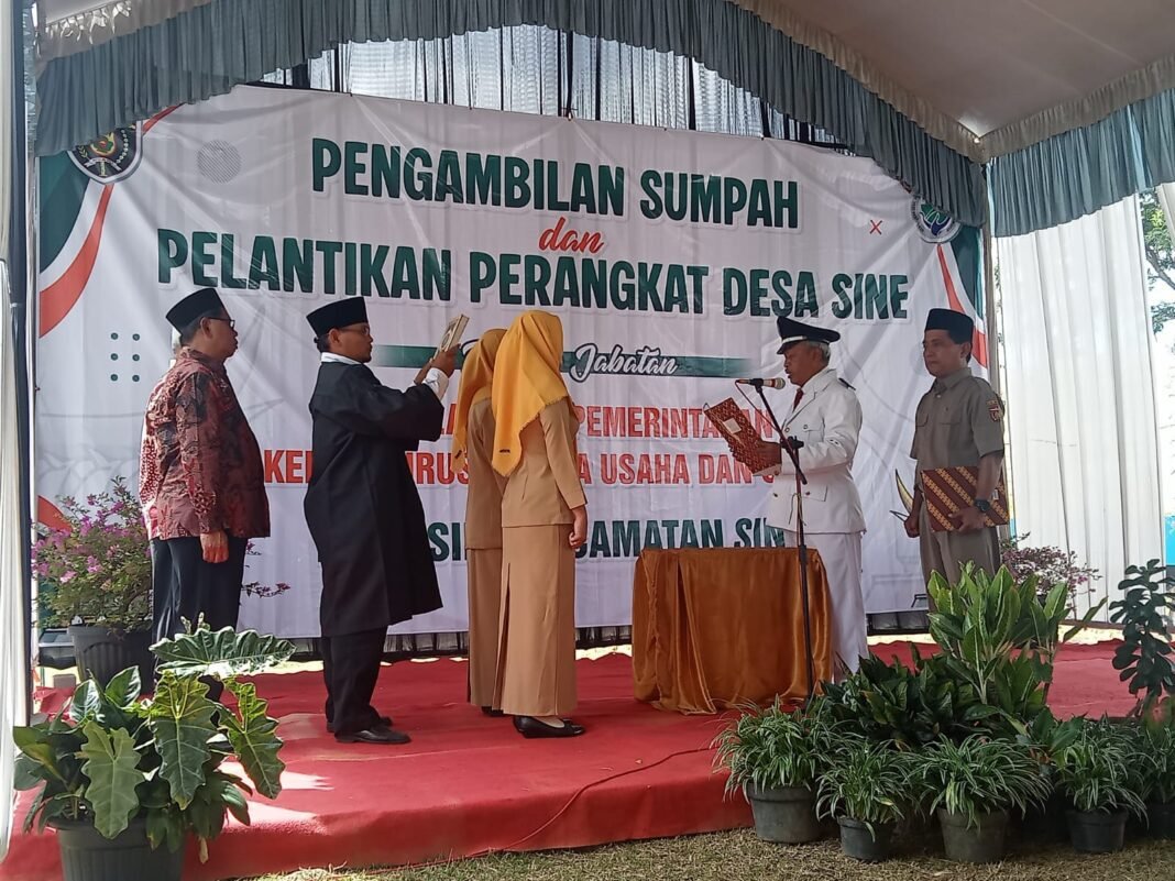 Rangkaian acara diawali dengan menyanyikan Lagu Kebangsaan Indonesia Raya sebagai wujud kecintaan terhadap Negara Kesatuan Republik Indonesia (NKRI). Selanjutnya dilakukan pembacaan Surat Keputusan Kepala Desa, pengambilan sumpah dan janji jabatan oleh Kepala Desa Sine, penandatanganan berita acara sumpah jabatan, serta penyerahan Surat Keputusan (SK) kepada perangkat desa yang dilantik.