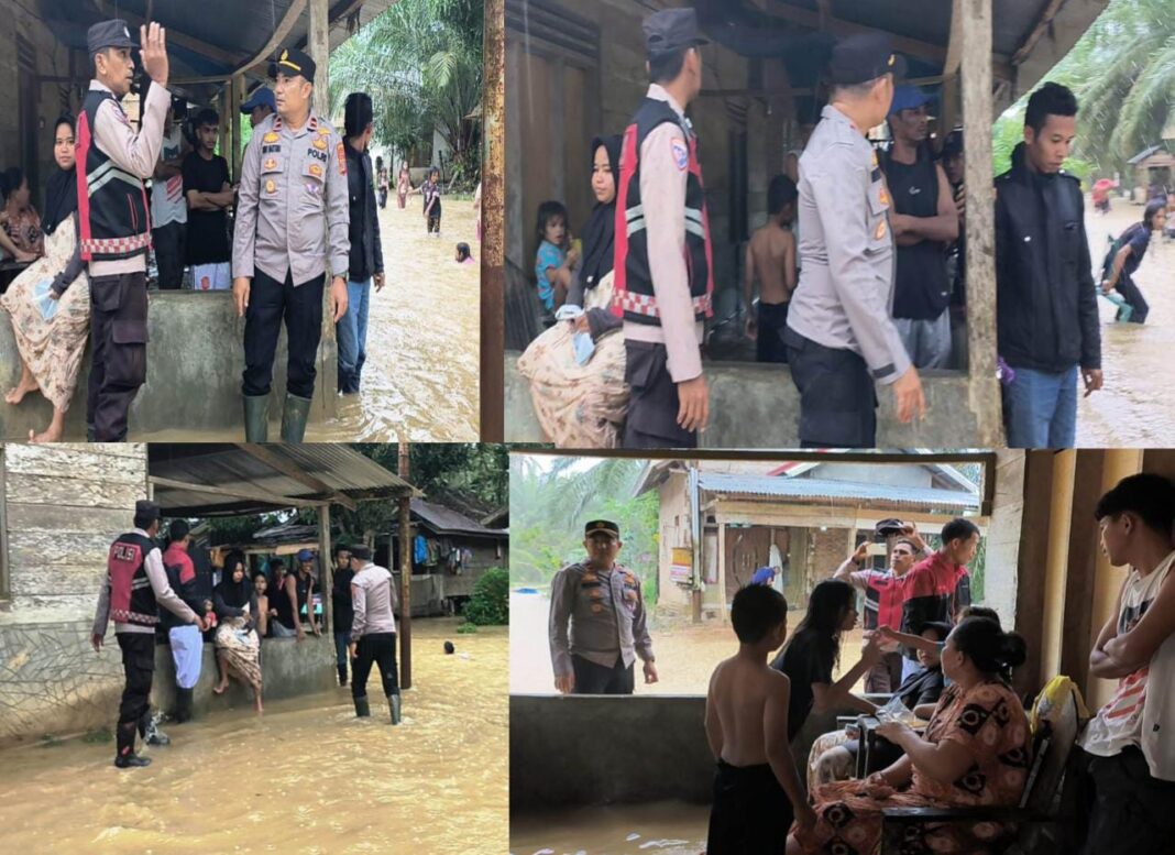 Kapolsek Banda Alam, Polres Aceh Timur, Polda Aceh, Ipda Budi Hartono, S.Sos bersama sejumlah anggotanya pada Selasa, (25/11/2025) sore melakukan monitoring gampong di wilayahnya tergenang air akibat tingginya curah hujan beberapa hari terakhir ini.