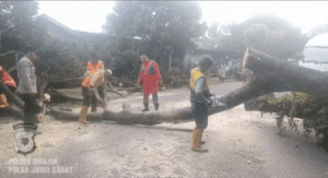 Respons Cepat Personel Polsek Cikalongkulon Tangani Pohon Tumbang, Akses Jalan Kembali Normal