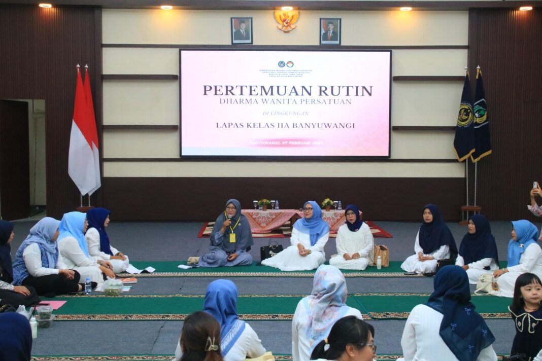 BANYUWANGI – Menyongsong datangnya bulan suci Ramadan 1447 H, Dharma Wanita Persatuan (DWP) Lembaga Pemasyarakatan (Lapas) Kelas IIA Banyuwangi menggelar kegiatan pertemuan rutin yang dirangkai dengan pengajian dan doa bersama. Kegiatan yang berlangsung khidmat ini dipusatkan di Aula Sahardjo Lapas Banyuwangi, Sabtu (7/2).