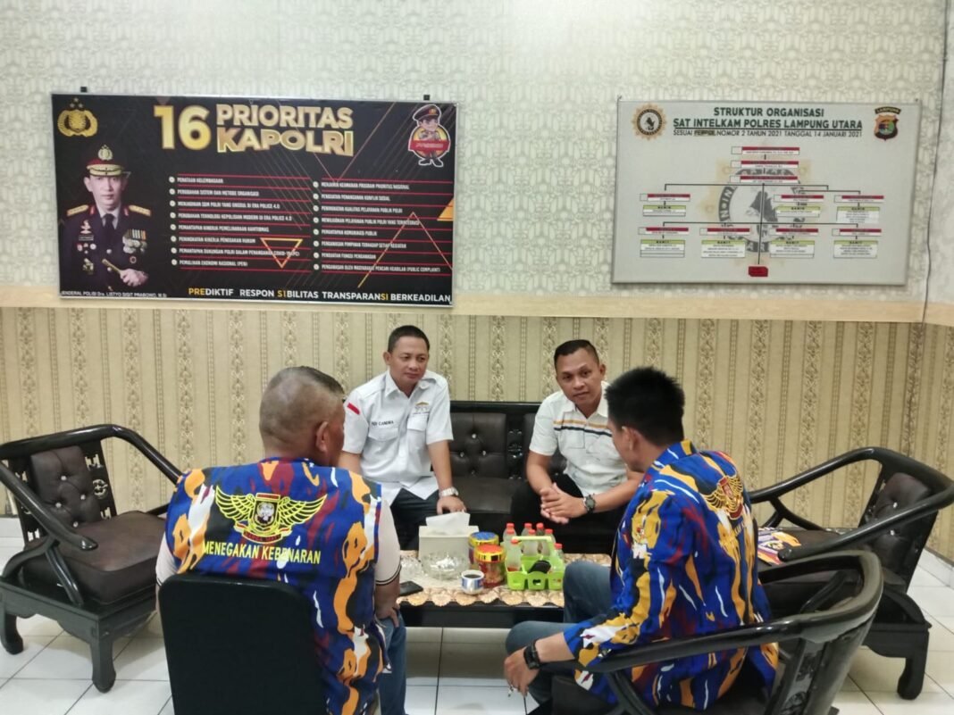 Kegiatan tersebut berlangsung di ruang Kasat Intelkam Polres Lampung Utara, dengan melibatkan Ketua LSM Laskar NKRI Provinsi Lampung Ansori beserta pengurus, serta Ketua Laskar Lampung Kabupaten Lampung Utara Adi Candra.