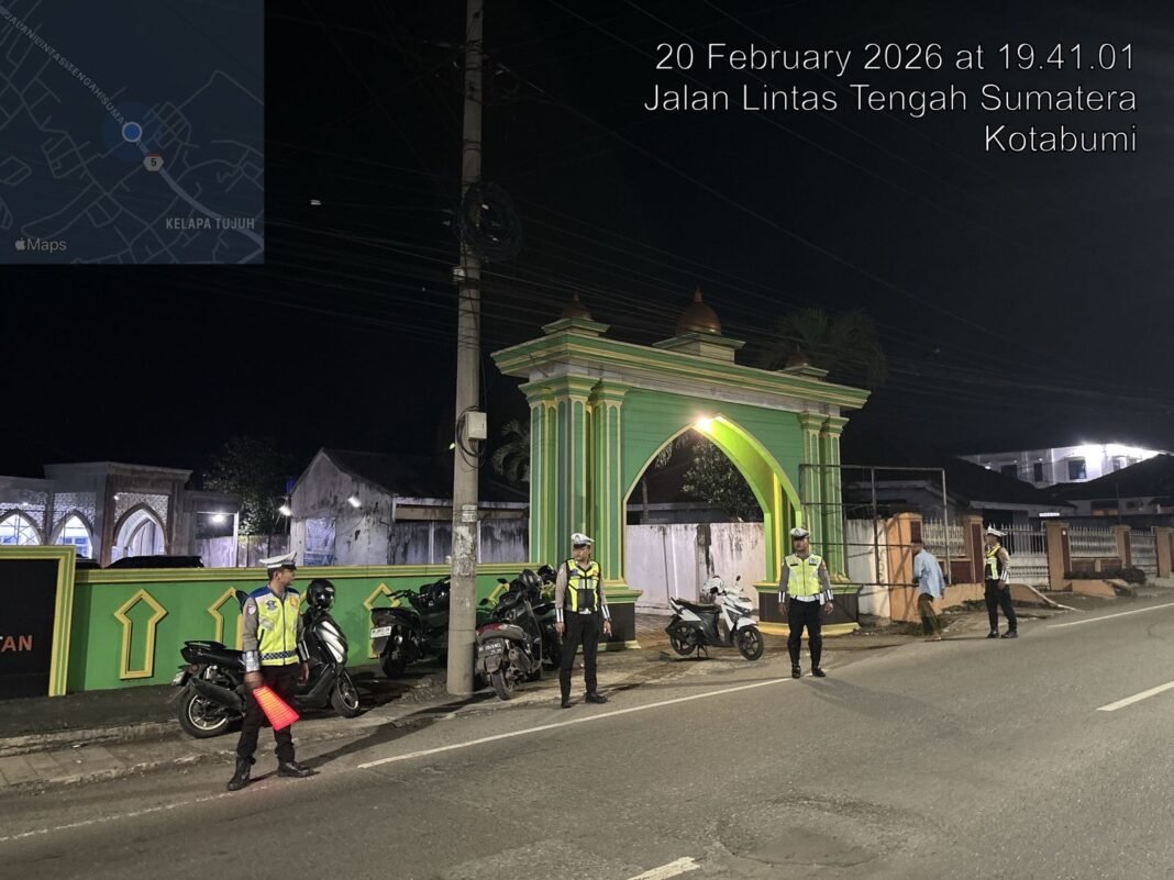 Lampung Utara l Mediaistana.com – Dalam rangka memberikan rasa aman dan nyaman kepada masyarakat yang melaksanakan ibadah Sholat Tarawih di bulan suci Ramadhan, Satuan Lalu Lintas Polres Lampung Utara menggelar kegiatan Patroli Malam (Light Blue), Jumat (20/2/2026) malam.