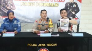 Kapolres Purworejo AKBP Windy Syafutra, S.H., S.I.K., M.Med.Kom melalui Wakapolres Purworejo Kompol Nana Edi Sugito, S.H., didampingi Kasat Narkoba AKP Amirudin zulkarnain , S.H., serta Kasi Humas AKP Ida Wida Astuti, S.H., M.A.P., menyampaikan pengungkapan kasus tersebut dalam konferensi pers.