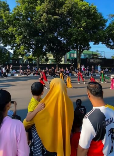‎Di tengah udara segar dan ramainya aktivitas warga, gerak tari yang anggun dan penuh makna dari para penari mampu menghadirkan nuansa budaya yang kental. Alunan musik tradisional berpadu harmonis dengan setiap gerakan, menciptakan pertunjukan yang tidak hanya indah, tetapi juga sarat nilai seni.
