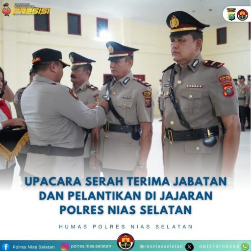 Nias Selatan•||mediistana.com~Upacara Serah Terima Jabatan dan Pelantikan di Jajaran Polres Nias Selatan berlangsung di Mako Polres Nias Selatan, Minggu (12/10/2025).