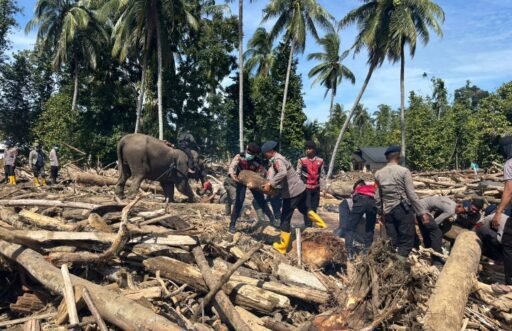 “Empat gajah yang kita datangkan bersama BKSDA Aceh hari ini sudah berada di lokasi. Mereka langsung kita kerahkan untuk menarik kayu-kayu besar serta material berat lainnya yang menumpuk akibat banjir,” ujar Iptu Fauzi.