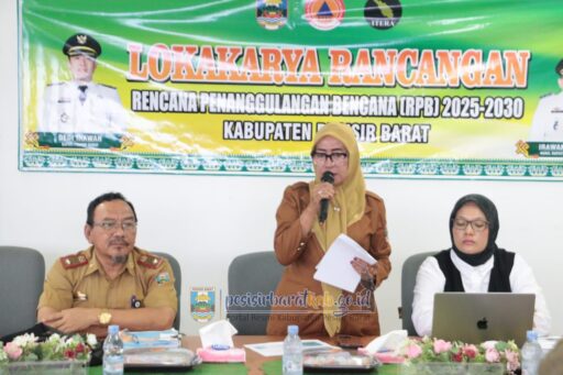 Pesisir Barat – Staf Ahli Bupati Bidang Pemerintahan, Hukum dan Politik Sekretariat Pemerintah Kabupaten (Pemkab) Pesisir Barat (Pesibar), Yurni Dewi, S.Pd., membuka kegiatan Lokakarya Rancangan Rencana Penanggulangan Bencana (RPB) Pesibar 2025-2030, di ruang rapat Sekda Lantai 3 Gedung Marga Sai Batin Komplek Perkantoran Pemkab Pesibar, Senin (7/7/2025).