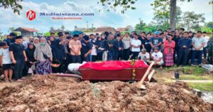 Prosesi pemakaman ini menjadi momen haru bagi keluarga, kerabat, dan rekan-rekan sejawat yang turut dihadir untuk memberikan penghormatan terakhir bagi almarhum.