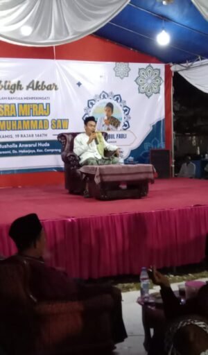 “Sementara dalam peringatan Isra mi’raj nabi Muhammad Saw tersebut dihadiri pula oleh Kepala Desa Mekar Jaya, tokoh agama, tokoh masyarakat , RT/RW dan sejumlah lapisan warga masyarakat, tua muda begitu antusiasnya berjubel memadati halaman mushola Anwarul Huda, mendengarkan siraman rohani dari sang mubaligh dengan penuh penghayatan.