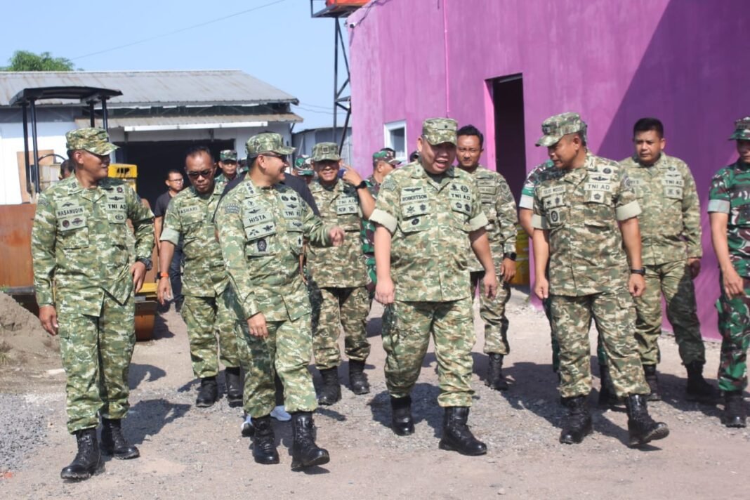 Komandan Kodim (Dandim) 0616/Indramayu Letkol Arm Tulus Widodo, S.E., M.Han., mendampingi Komandan Korem 063/Sunan Gunung Jati (Danrem 063/SGJ) Kolonel Inf Hista Soleh Harahap, S.I.P., M.I.P., M.Han., dalam menerima kunjungan Tim Supervisi