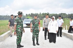 Rangkaian kegiatan dilanjutkan dengan peninjauan langsung hasil-hasil pembangunan TMMD oleh para tamu undangan dan pejabat yang hadir.
