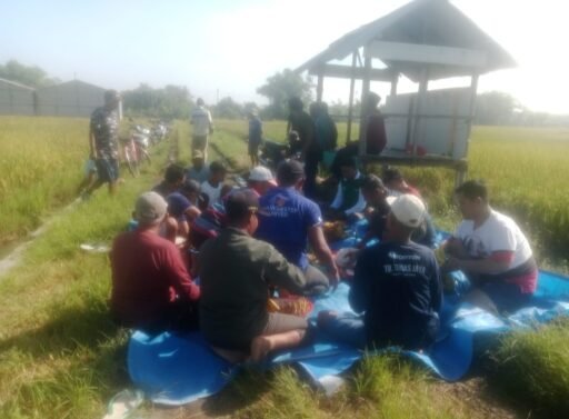 Sejak pukul 08.00 WIB, prosesi adat dimulai di sebuah gubuk kecil yang berada di tengah area persawahan. Para petani dan tokoh masyarakat tampak duduk melingkar di atas tikar yang digelar di pematang sawah,