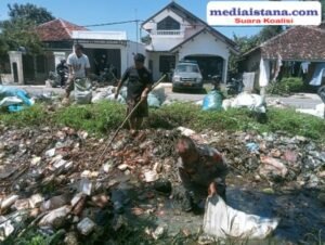 Dengan seragam dinasnya, Ipda Eryana terus berjuang menyerok dan mengangkat sampah ditengah berupaya membersihkan saluran yang tersumbat oleh sampah.