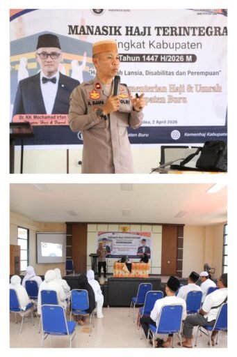 Wakapolres Buru, Kompol H. Akmil Djapa, menjadi narasumber dalam kegiatan Manasik Haji Terintegrasi tingkat Kabupaten Buru yang dilaksanakan di Aula Kantor Kementerian Agama Kabupaten Buru, Kamis (2/4/2026).