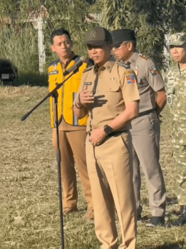 Dedie A. Rachim memimpin apel pagi di kawasan calon lokasi pembangunan SMAN 11 Bogor yang berlokasi di Lapangan Kayu Manis, Kecamatan Tanah Sareal, Kota Bogor, pada Senin (13/04/2026).